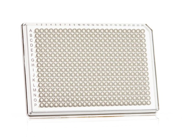 Polypropylene wells, polycarbonate frame, cut corner A24; working volume: <30µl, total well capacity: 55µl; designed for use on standard thermal cycler