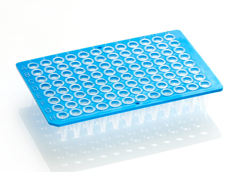 Standard profile, 0.2ml polypropylene wells, polycarbonate frame, cut corner H1, working volume: <200µl, total well capacity: 300µl; universal non-skirted plate designed for use on all major thermal cyclers