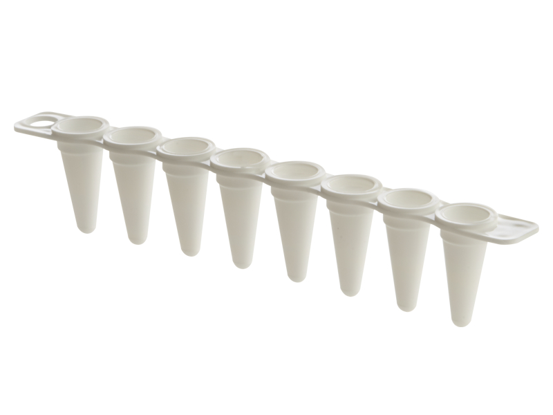 Low profile, 0.1ml polypropylene wells, working volume: <100µl, total well capacity: 200µl; can be used as a standalone product or inserted in any of the frames of PCR Plates for Removable 8 Well Tube Strips available for ease of handling. White; 120 tube strips