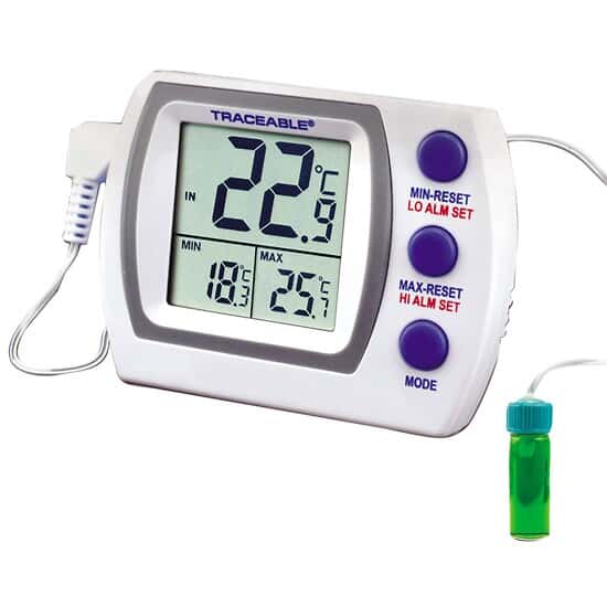 Easily monitor temperature in liquids, baths, air/gas, incubators, refrigerators, or freezers. Keep track of temperature conditions overnight or for any time period?minimum and maximum temperatures are stored until the memory is cleared. Models feature a triple display that simultaneously shows current, minimum, and maximum temperatures.